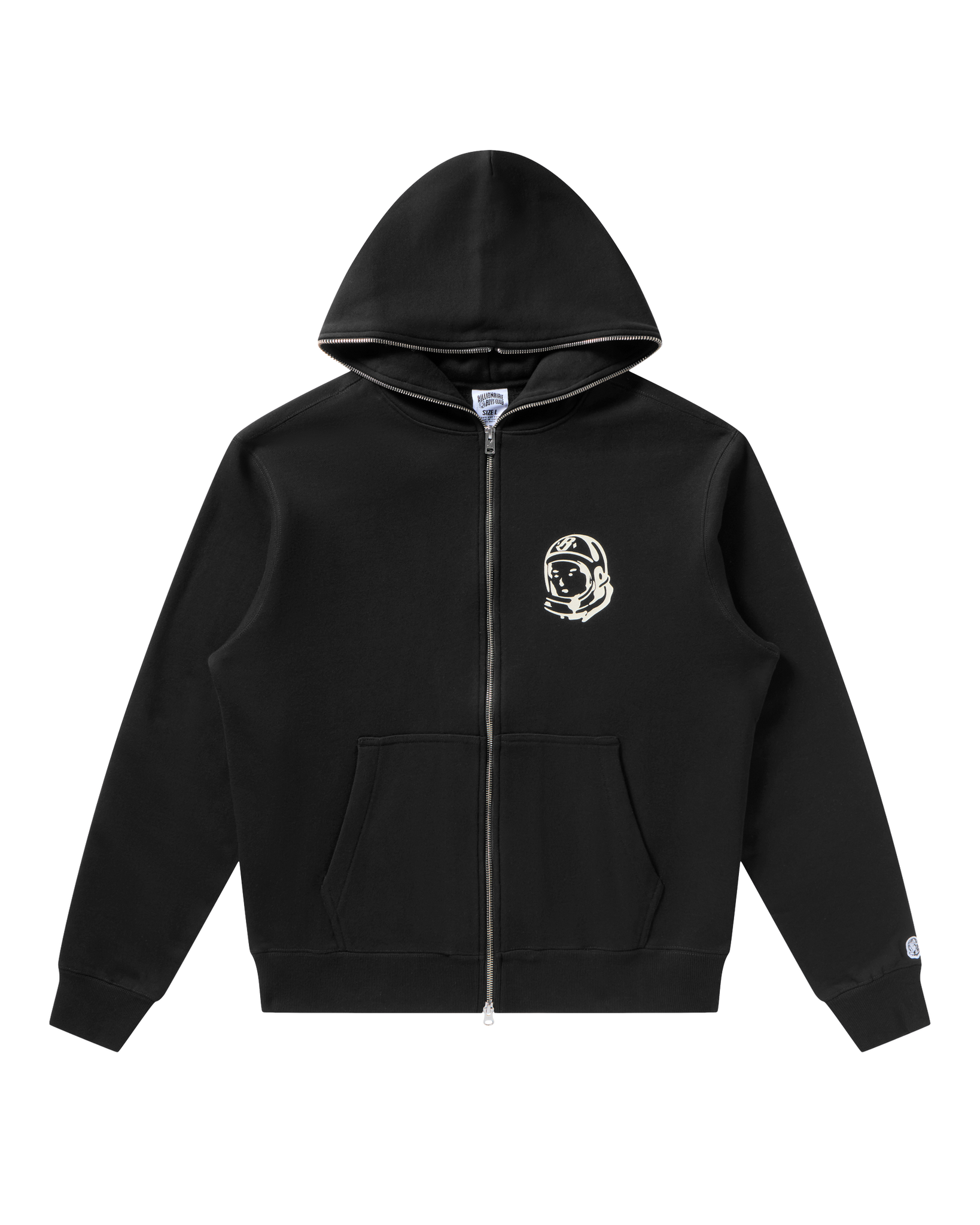 The Zip Helmet Hoodie features the Helmet Head logo printed on the front chest and back, finished with embroidered script on the back.