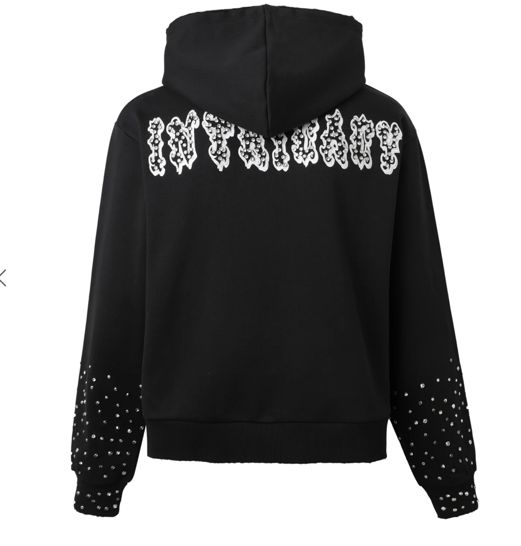Embroidered “LOST” graphic with crystal embellishments.
