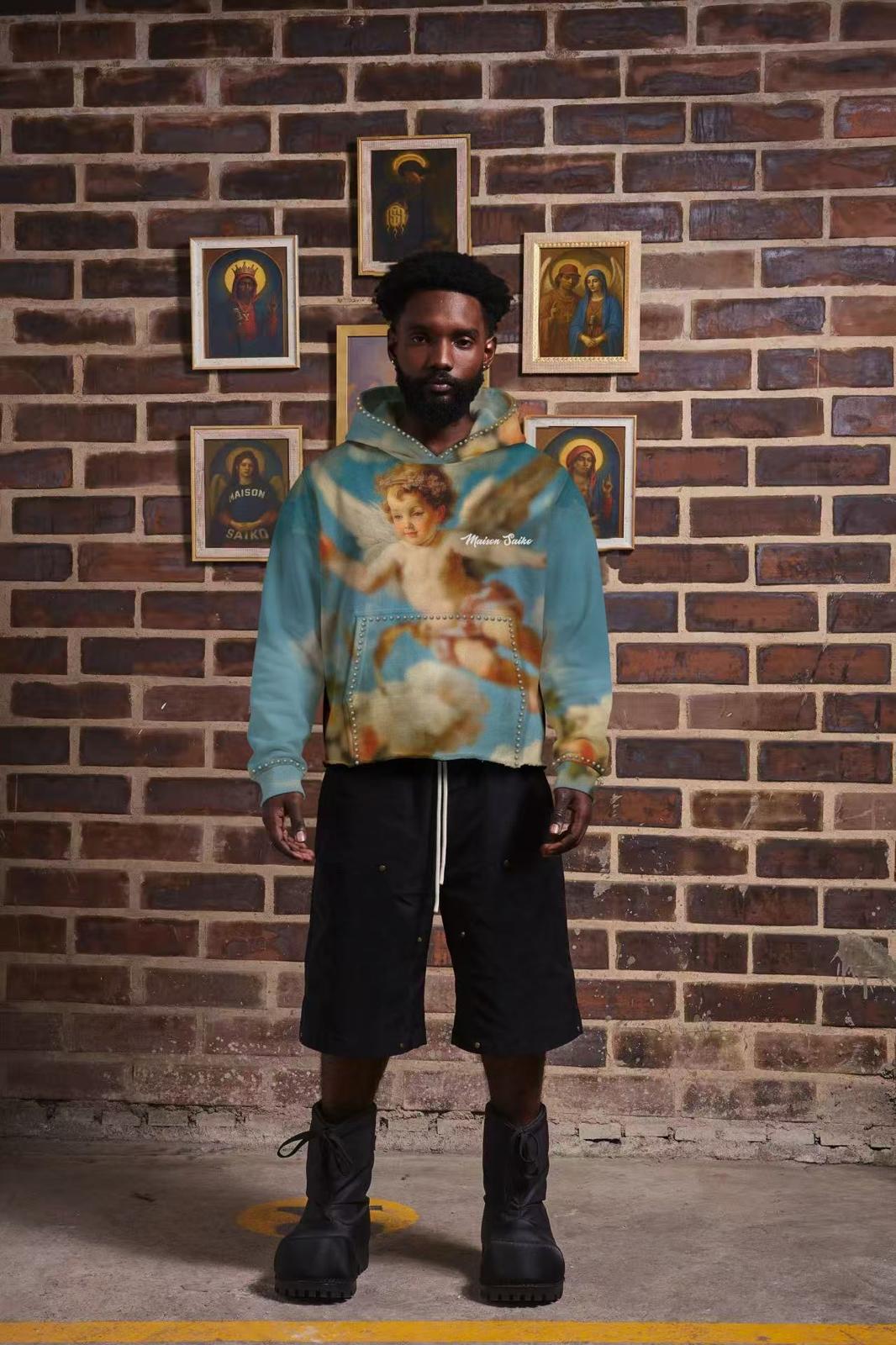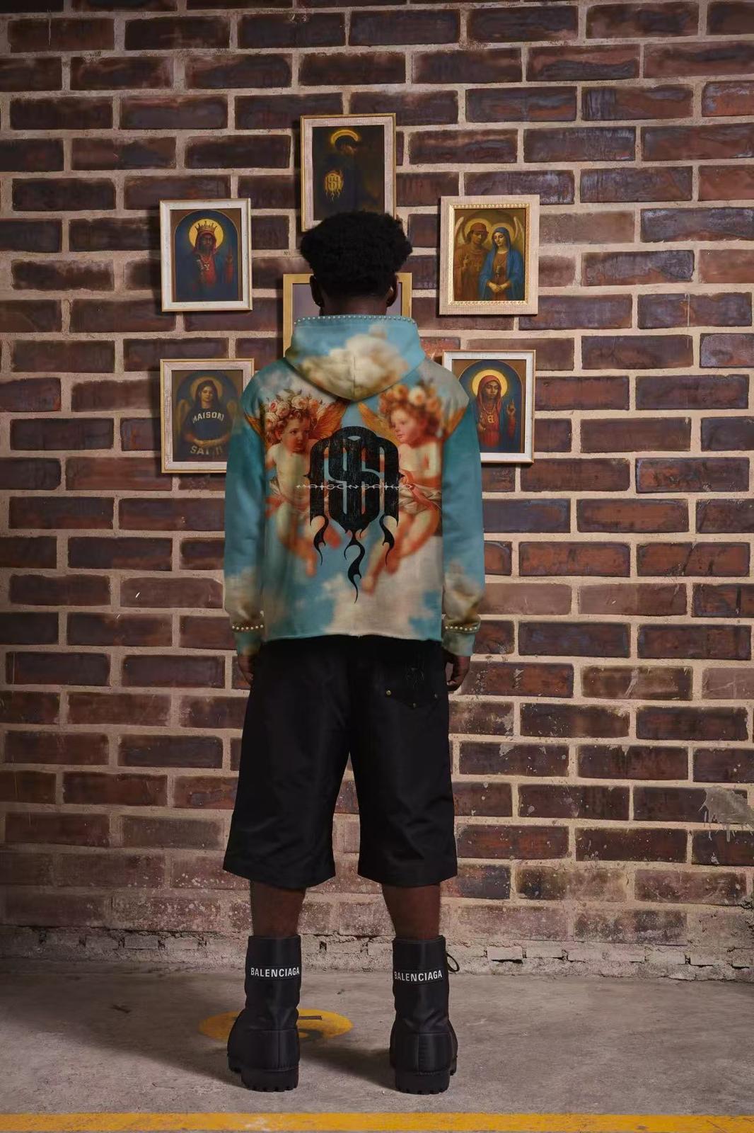 100% COTTON FRENCH TERRY  500GSM  CROP FIT FEATURING BIG DTG PRINT  WHIT HAND MADE UP MURANO CRISTAL BEADS  AND HALF CERAMIC PEARL