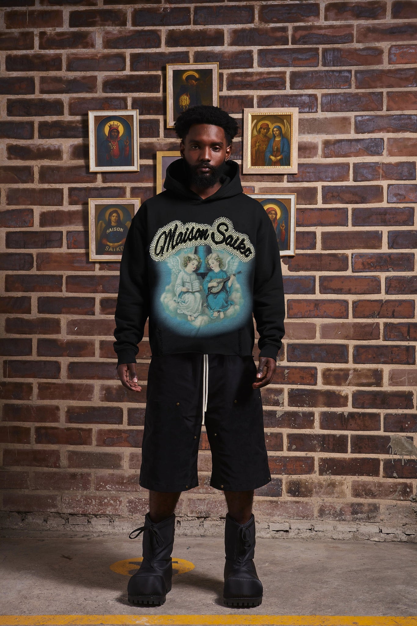 100% COTTON FRENCH TERRY  500GSM  CROP FIT FEATURING BIG DTG PRINT  WHIT HAND MADE UP MURANO CRISTAL BEADS  AND HALF CERAMIC PEARL